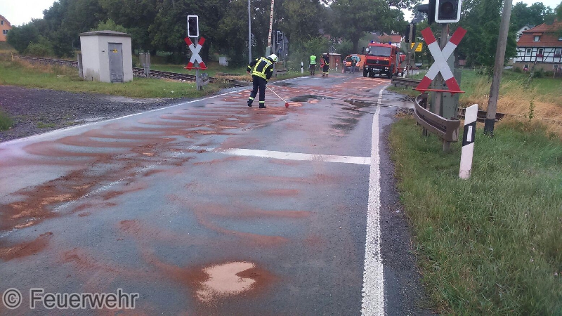 VKU und Ölspur auf der B 2 Bahnübergang Großebersdorf