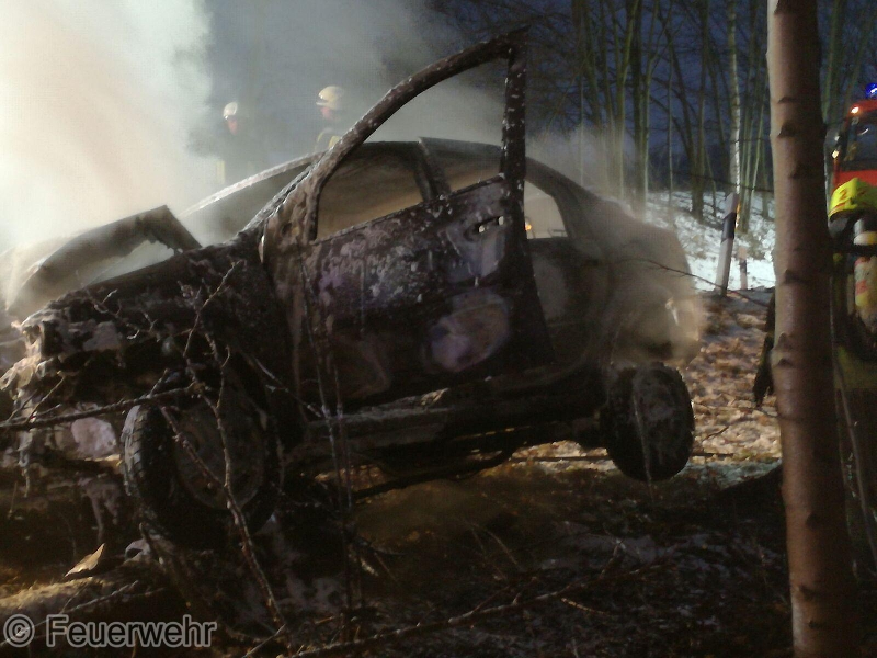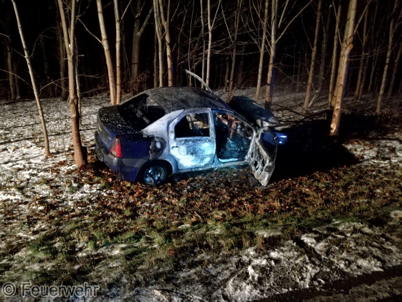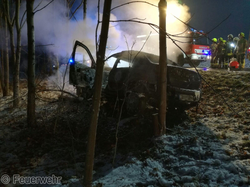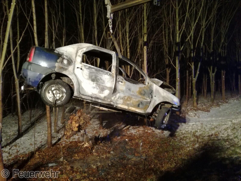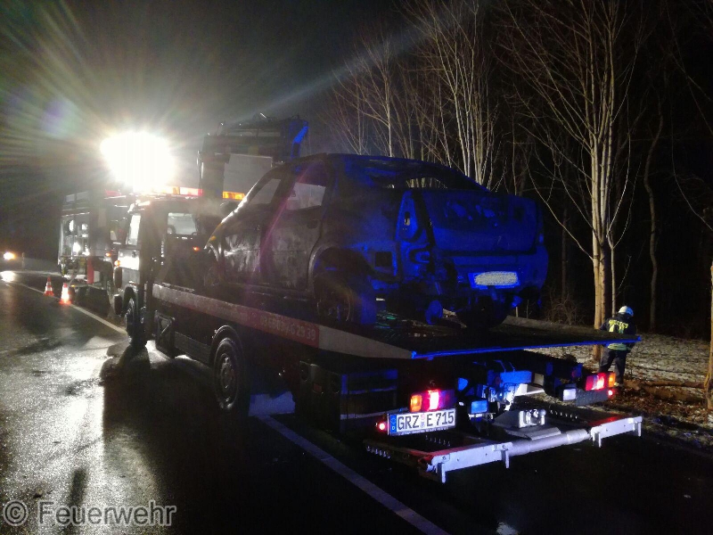 Die Kameraden wurden heute zu einem Verkehrsunfall mit brennenden Fahrzeug gerufen. Vor Ort war ein PKW gegen einen Baum geprallt und hatte Feuer gefangen. Beim Eintreffen der Feuerwehren Weida und Frießnitz brannte der PKW in voller Ausdehnung.Die verletzte Person wurde bis zum Eintreffen des Rettungsdienstes versorgt. Die Einsatzstelle wurde nach der Bergung des Fahrzeugs gereinigt und der Polizei übergeben. Die Feuerwehren Niederpöllnitz und Großebersdorf konnten den Einsatz abbrechen.