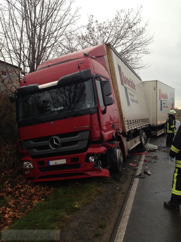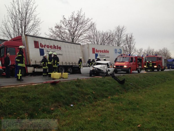 Schwer verletzt wurde der Fahrer eines Pkw`s,als er beim Überholvorgang mit einem entgegenkommendem Lkw kollidierte. Die Bundesstrasse blieb für 1.5 Std. gesperrt.