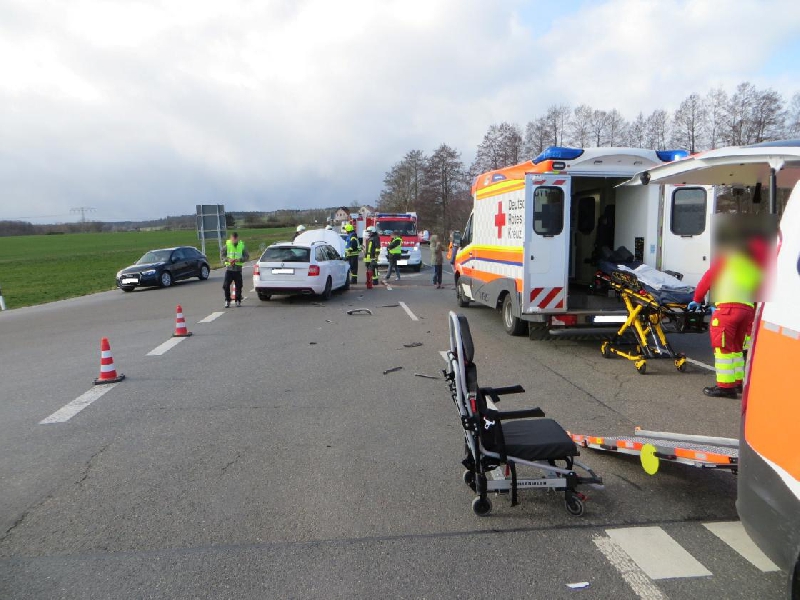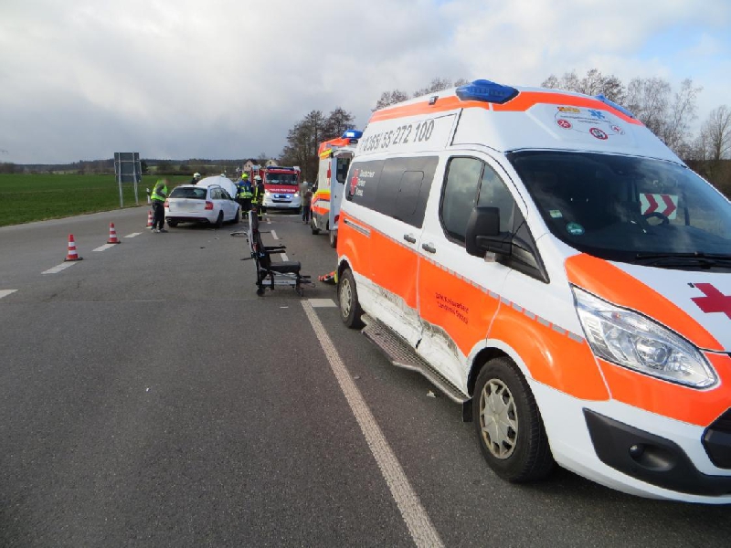 Pkw nimmt als Linksabbieger einen KTW vom DRK aufs Korn.
